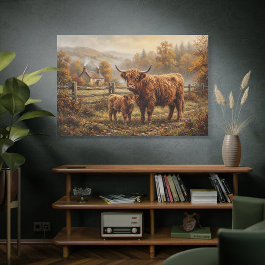 Highland Harmony – Cow and Calf Autumn Countryside Canvas Wall Art