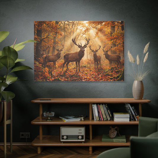 Autumn Majesty – Stag Herd in Golden Forest Canvas Wall Art