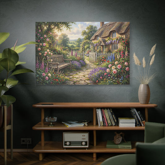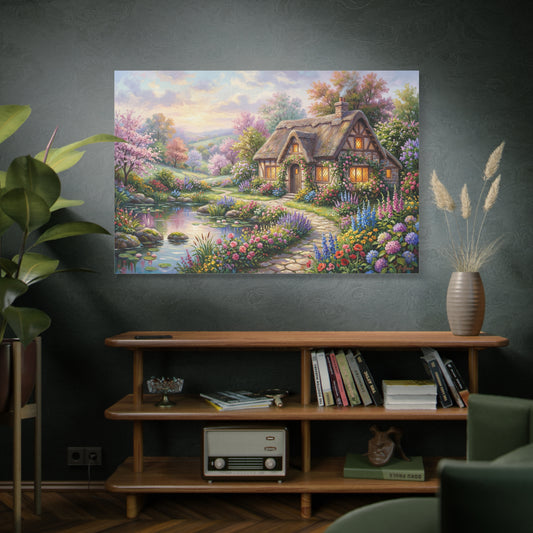 Enchanted Garden Cottage – Blooming Spring Countryside Canvas Wall Art