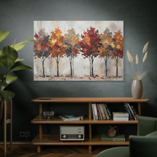 Autumn Harmony – Abstract Fall Trees Canvas Wall Art