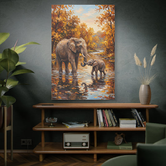 Golden Bond – Elephant Mother and Baby Canvas Wall Art