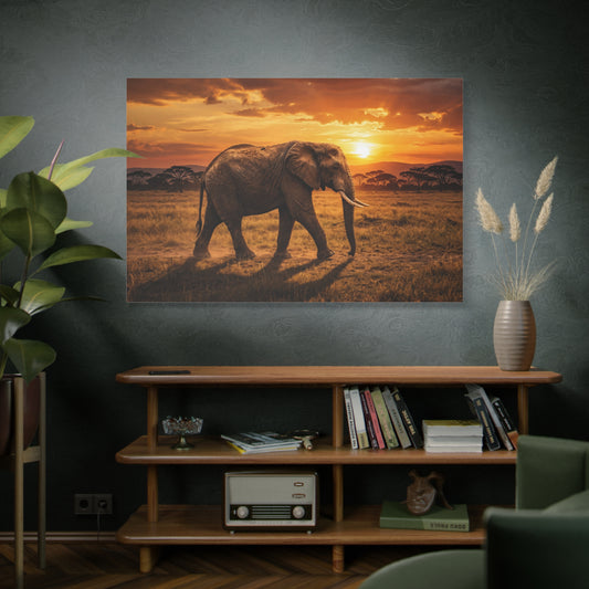 Golden Journey – Majestic Elephant at African Sunset Canvas Wall Art