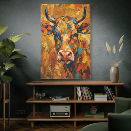 Golden Spirit – Abstract Colorful Cow Canvas Wall Art