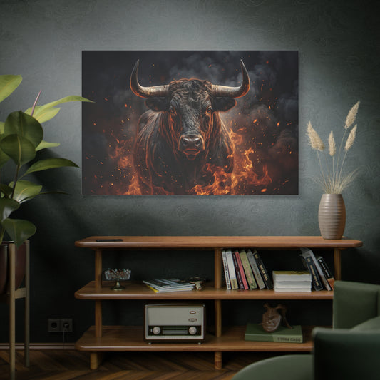Inferno Strength – Fierce Bull Canvas Wall Art