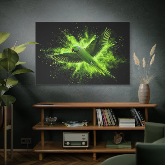Neon Green Parrot Burst – Dynamic Abstract Wildlife Canvas Wall Art
