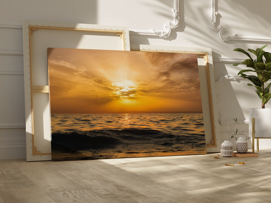 Golden Sunset Over Ocean Waves – Serene Beachscape