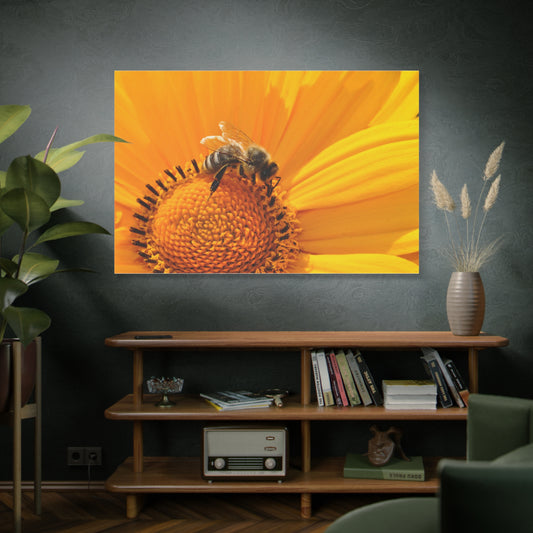 Delicate Honeybee on Flower Canvas Wall Art – A Tribute to Nature’s Pollinators