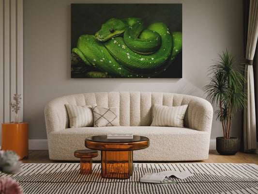 Emerald Green Python Canvas Wall Art – Exotic Wildlife Print for Bold Nature-Inspired Interiors