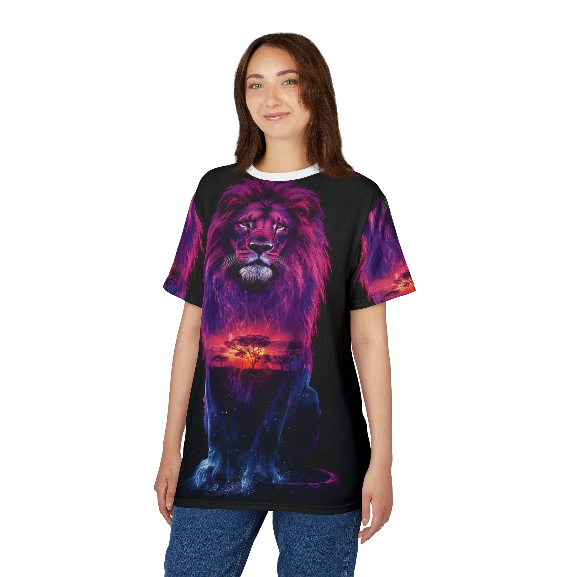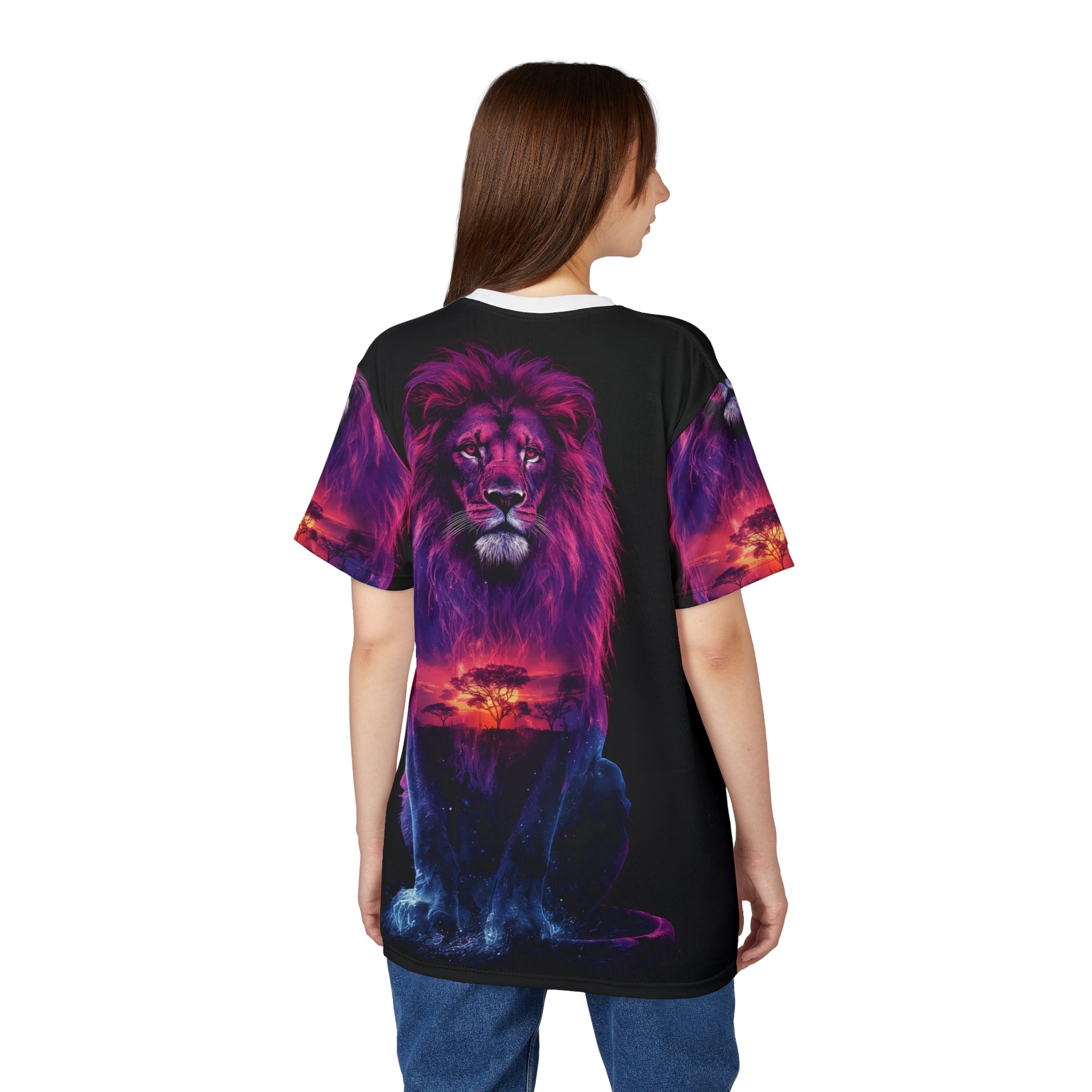 SEO Tags: sunset lion t-shirt, galaxy lion art, savannah lion design, cosmic lion shirt, majestic lion print, sunset landscape artwork, art of royals lion, glowing lion tee, fantasy animal apparel, wild lion t-shirt, neon lion design, wildlife art clothing, galactic lion print, royal lion apparel, colorful lion shirt, cosmic sunset lion, artistic lion design, african sunset lion, fantasy wildlife art, powerful lion t-shirt