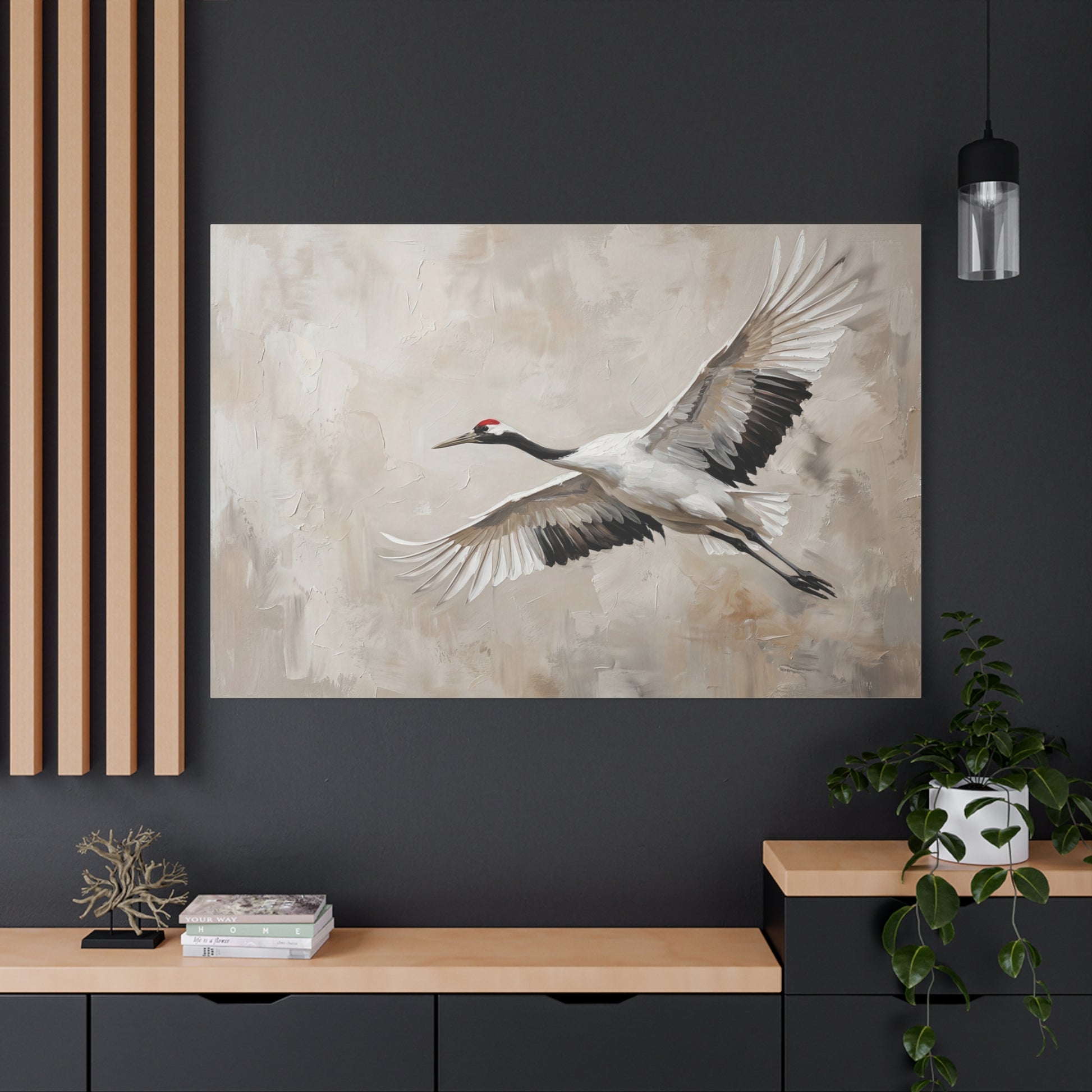 Grace in Flight – Elegant Crane Bird Canvas Wall Art