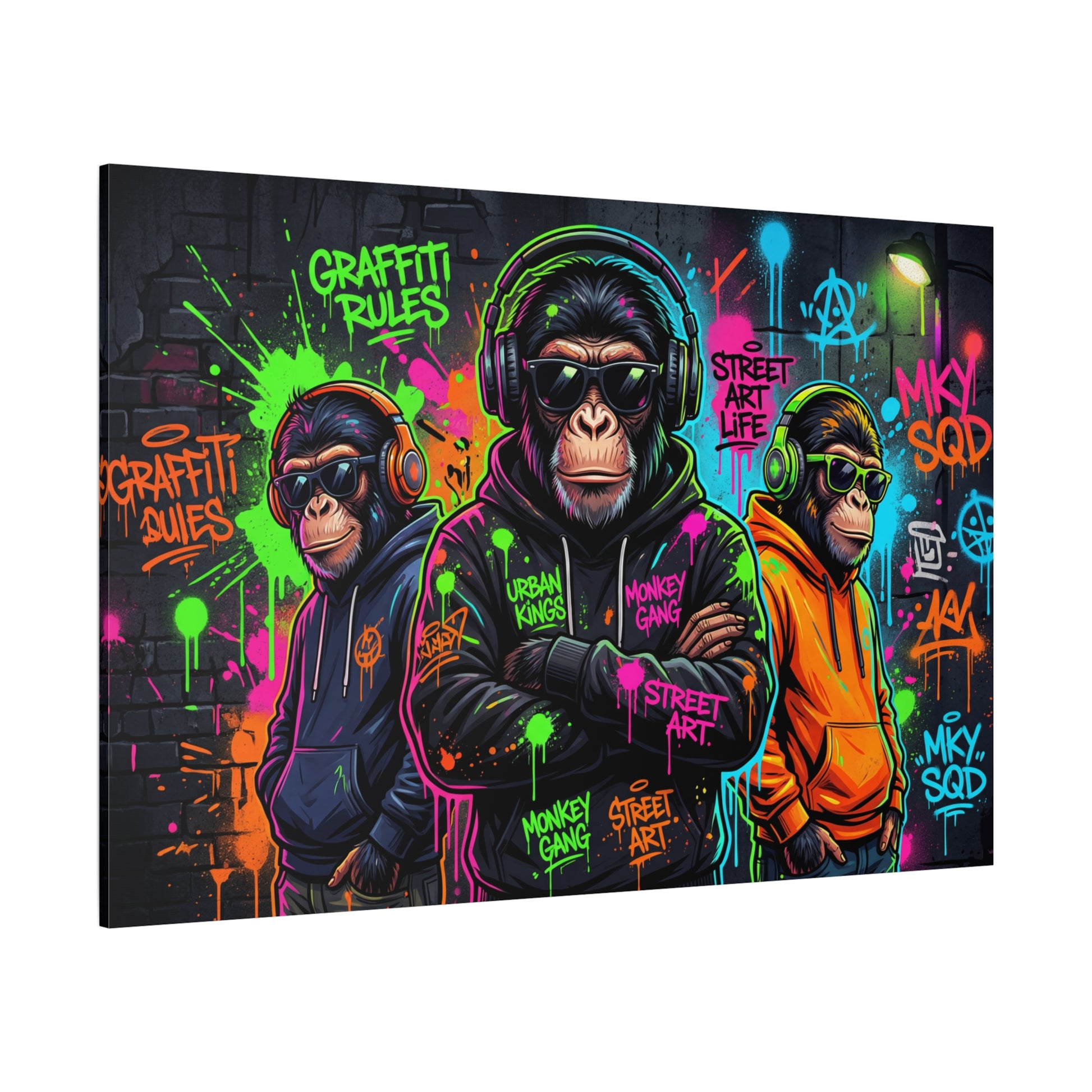 Urban Monkey Kings – Neon Graffiti Street Art Canvas